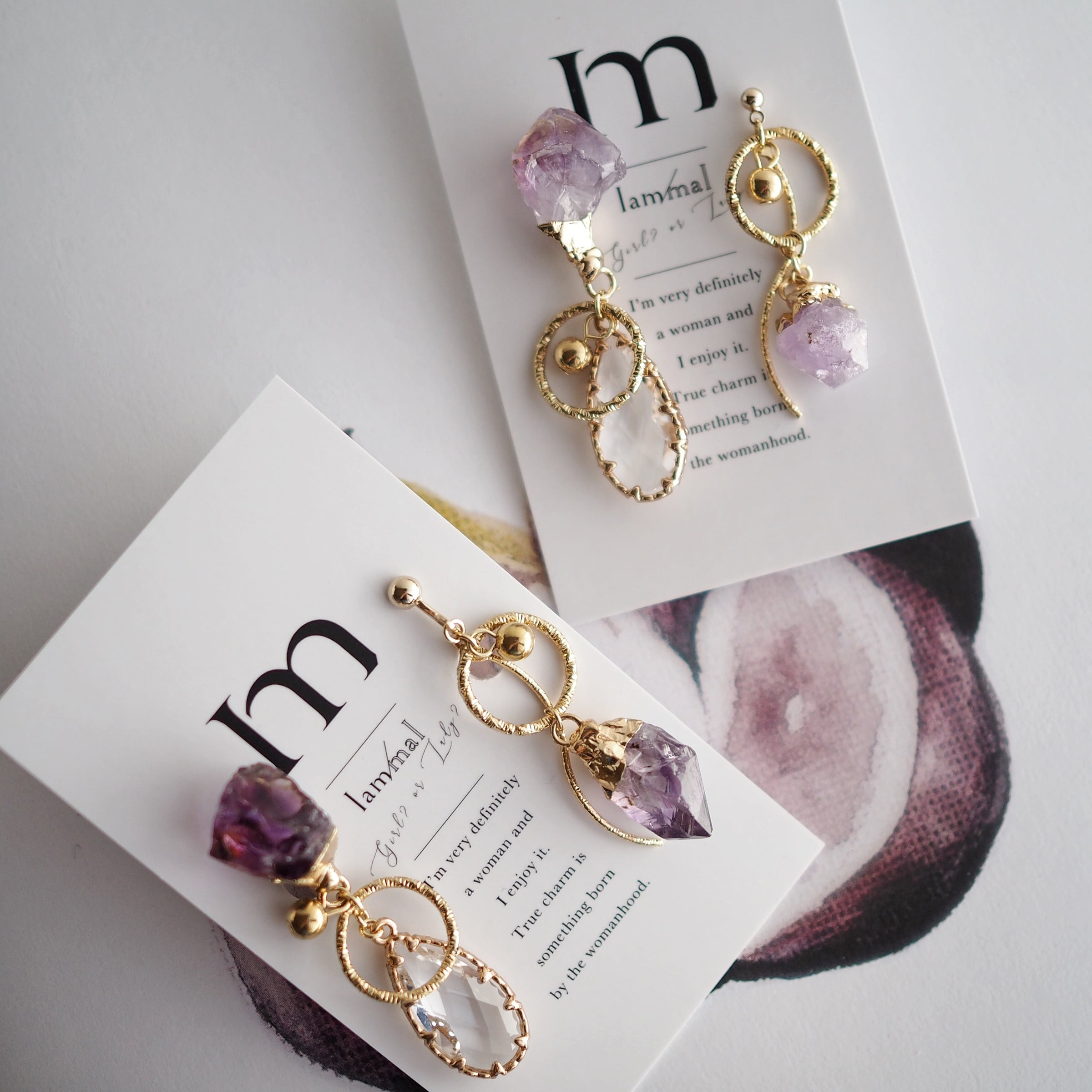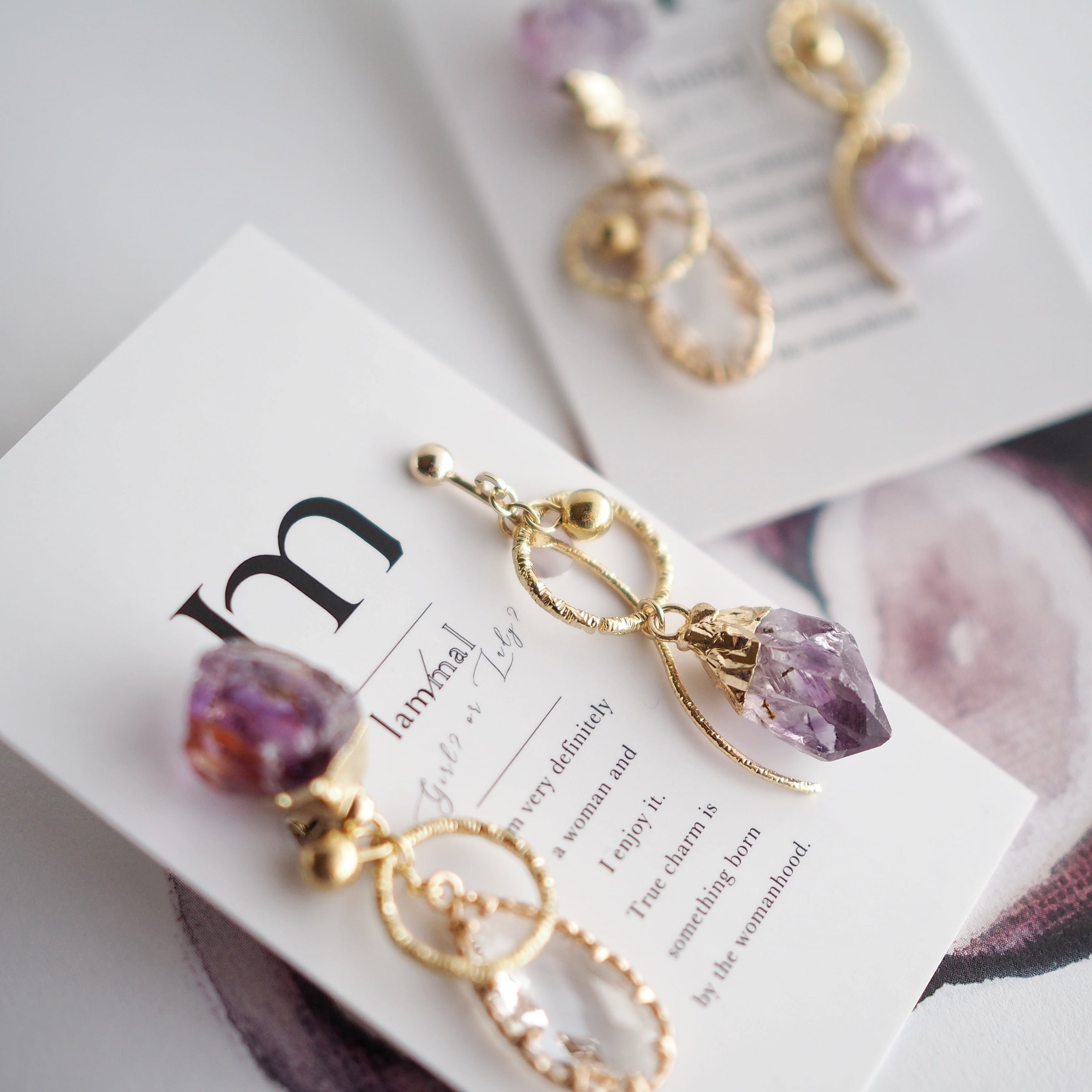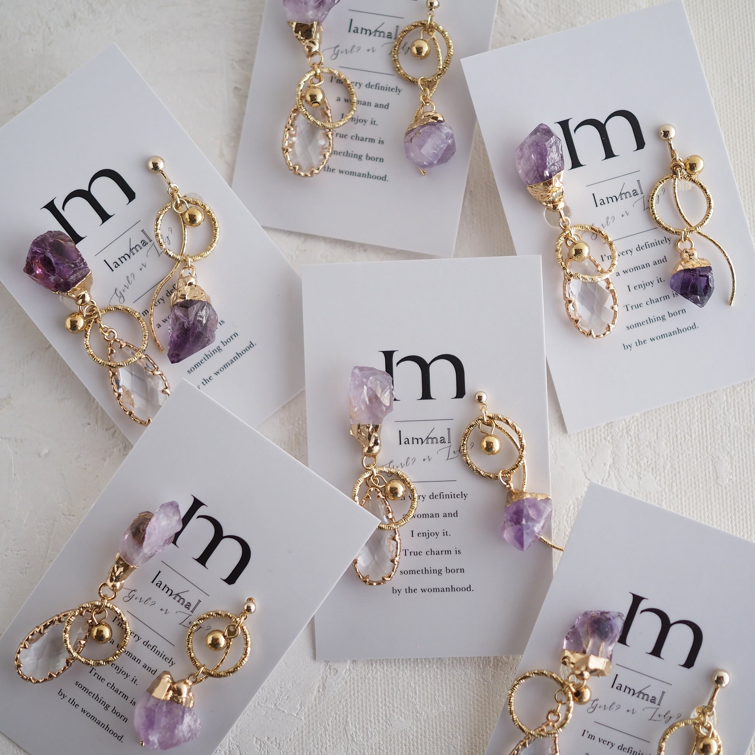 ゴツゴツとした天然石の石をより女性らしく使いやすくなるようにキラキラしたパーツを合わせてデザインしました